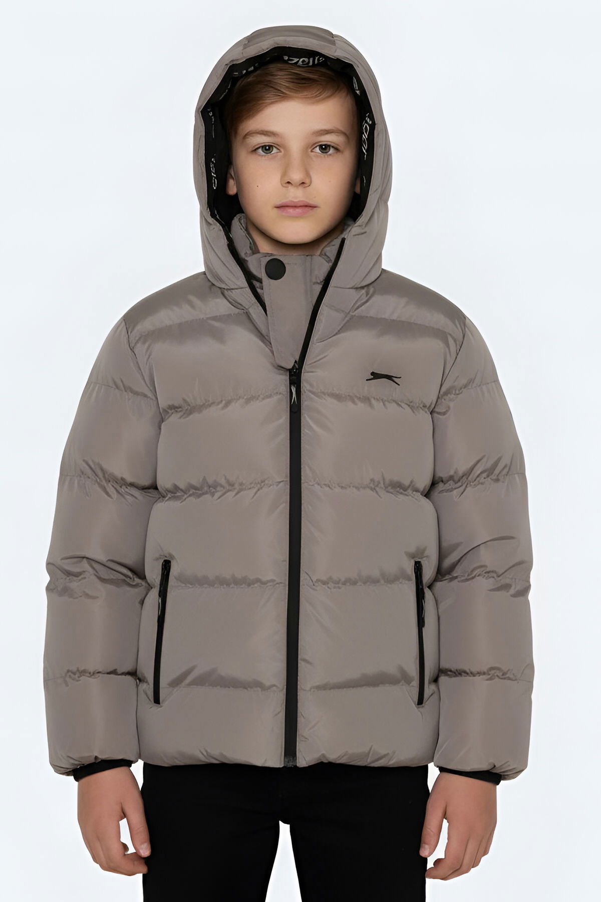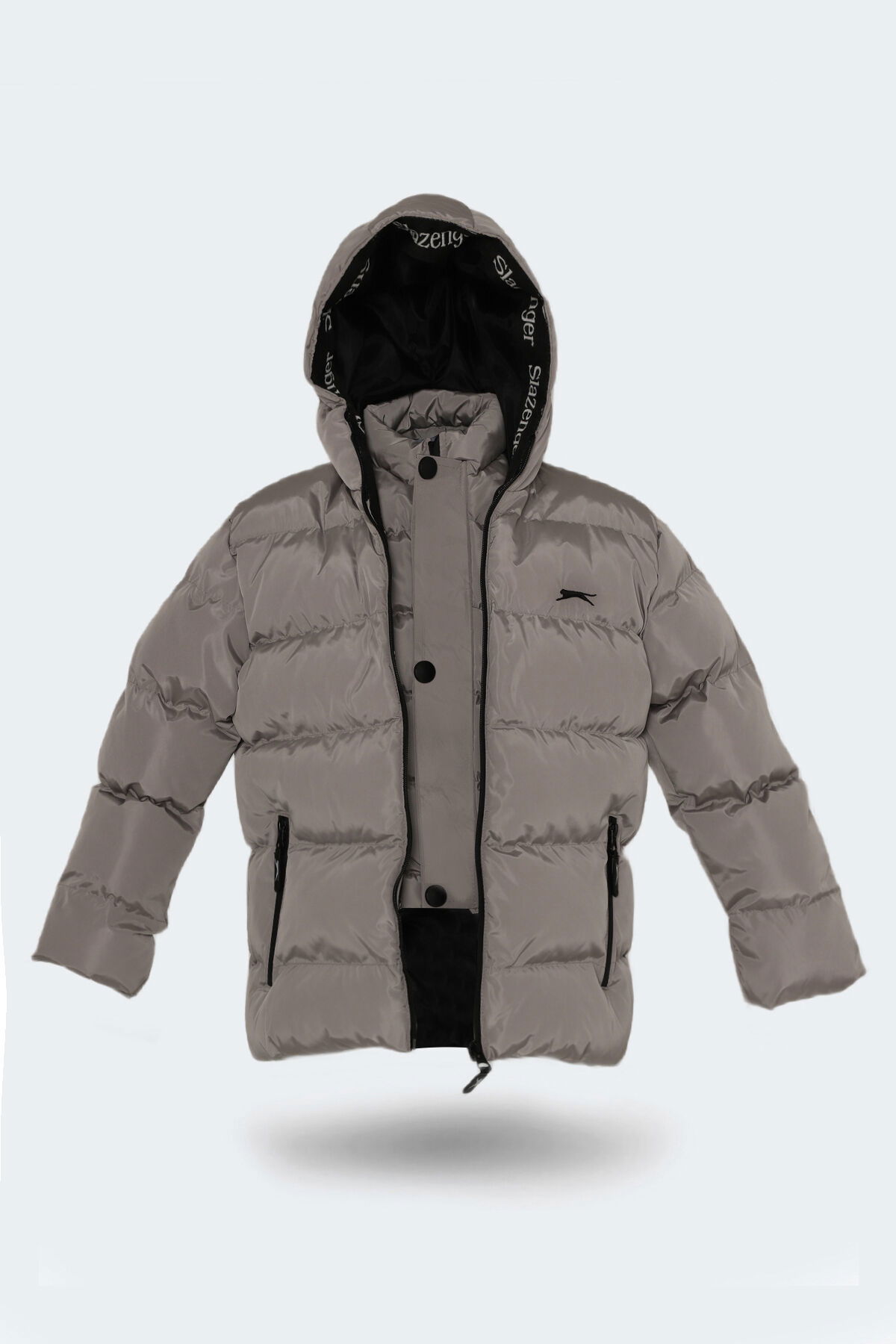Slazenger NEONS Çocuk Kapüşonlu Şişme Taş Gri Mont & Kaban