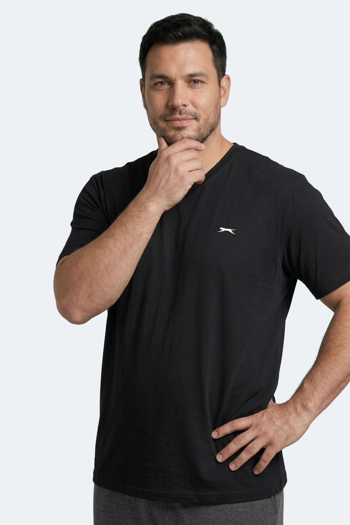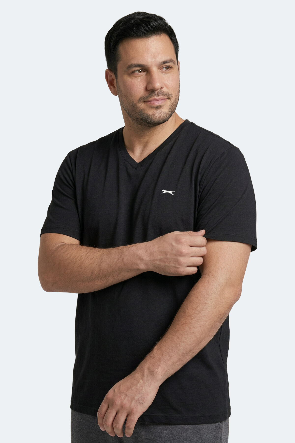 Slazenger SARGON KTN Büyük Beden Erkek V Yaka Siyah Tişört
