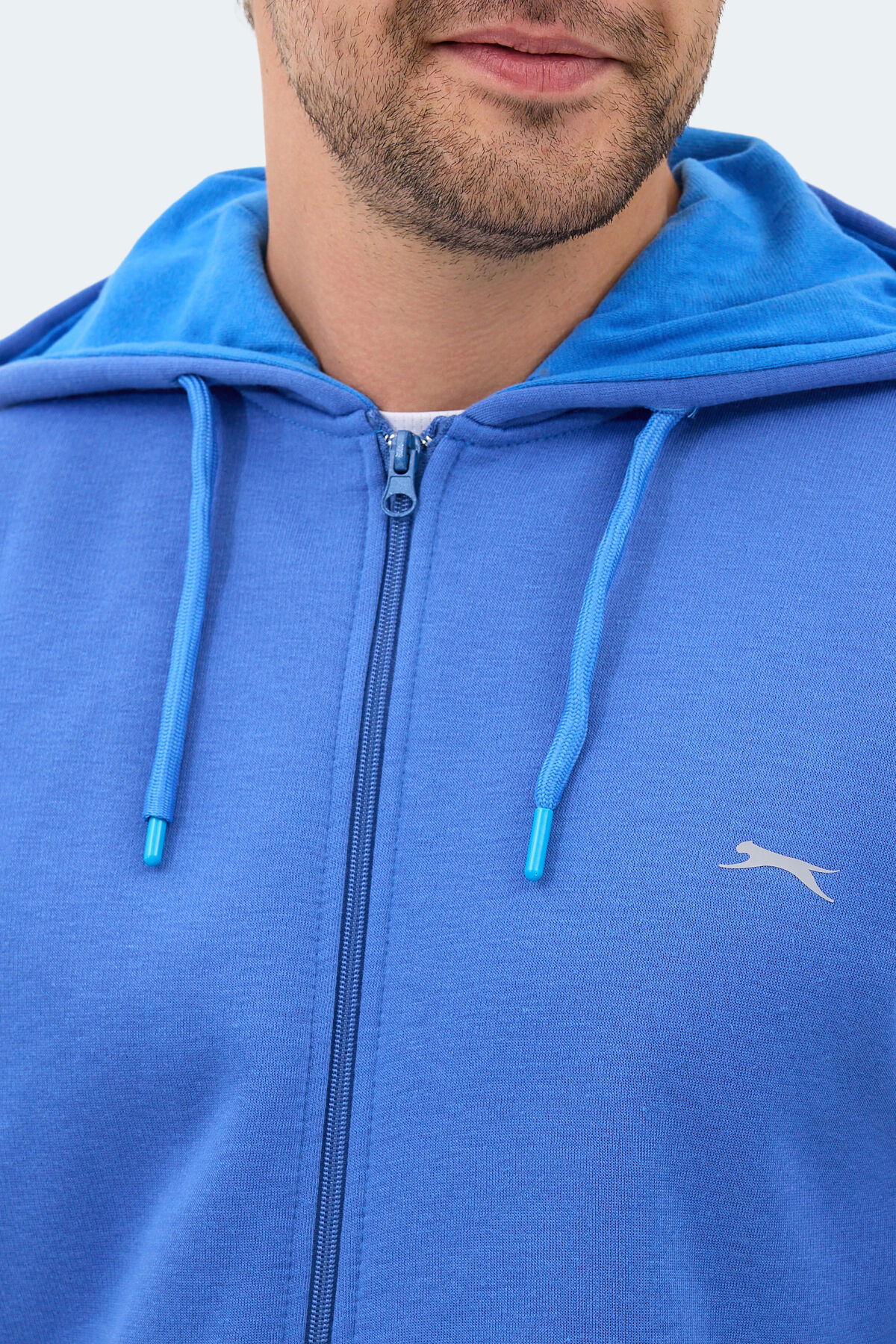 Slazenger MAJESTIC I Erkek Fermuarlı Kapüşonlu Cepli Indigo Sweatshırt