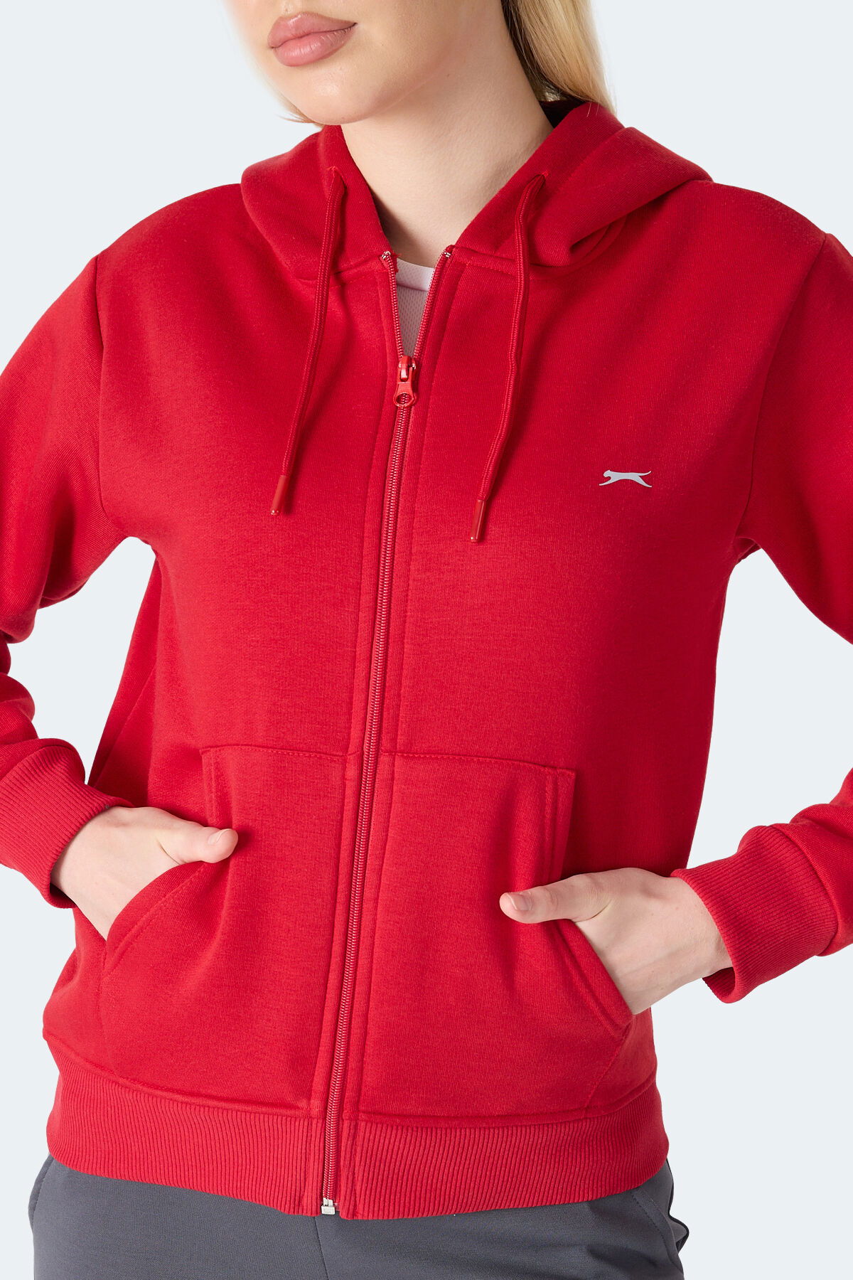 Slazenger MILIO I Kadın Fermuarlı Kapüşonlu Cepli Kırmızı Sweatshirt