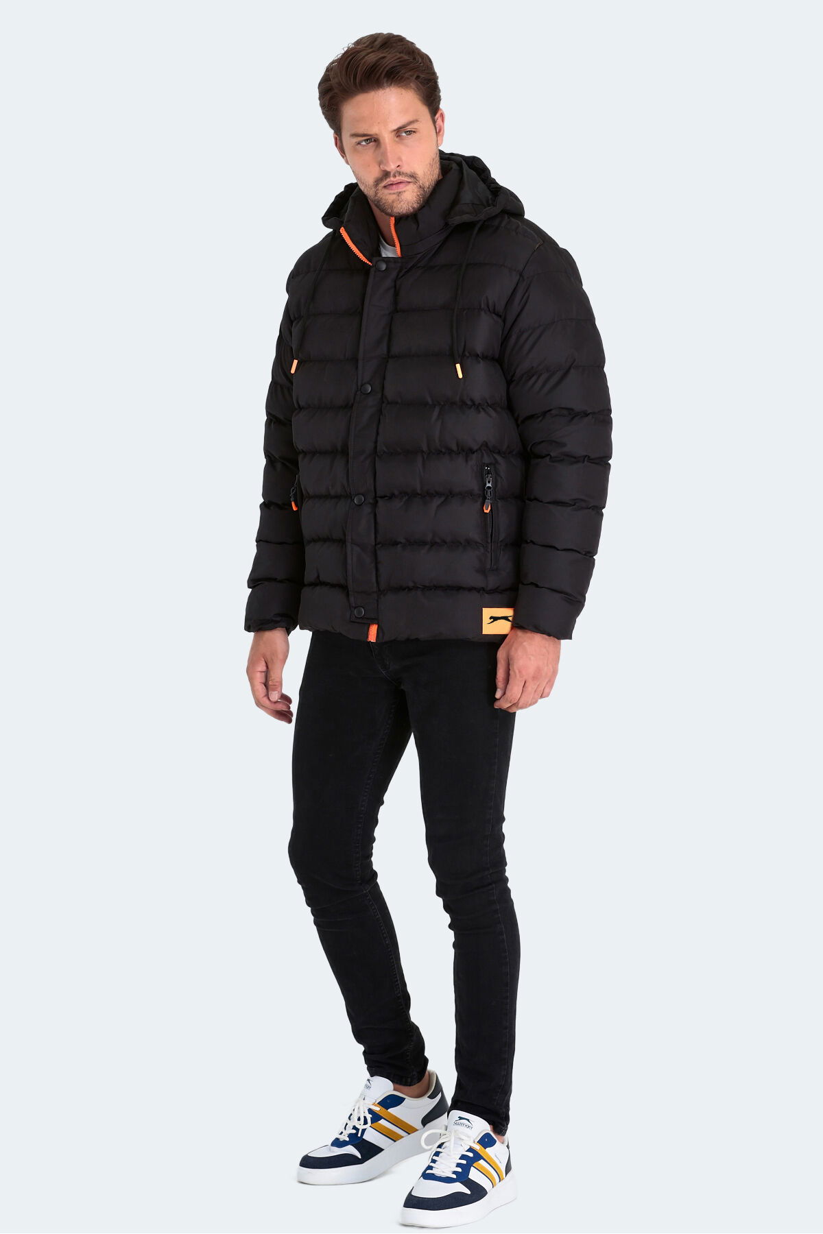 Slazenger SALINE Erkek Kapüşonlu Şişme Siyah Mont & Kaban